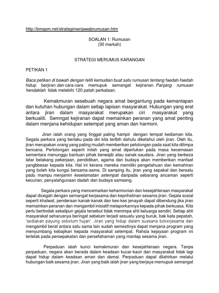 Nota komsas isi karangan contoh karangan spm pt3 stpm. Semangat kejiranan akan mendorong jiran kita menjaga keselamatan tempat tinggal. Contoh karangan spm bahasa melayu tingkatan 4 5.